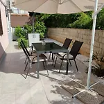 A fully equipped kitchen includes a microwave oven, an electric kettle, and a refrigerator for your comfortable stay. The 45 m^2 apartment is merely 10 km from Pula airport. There is a terrace with views of the garden.